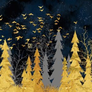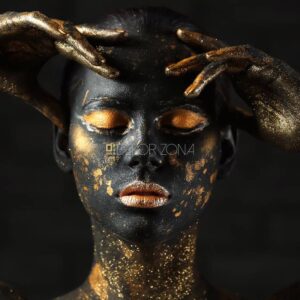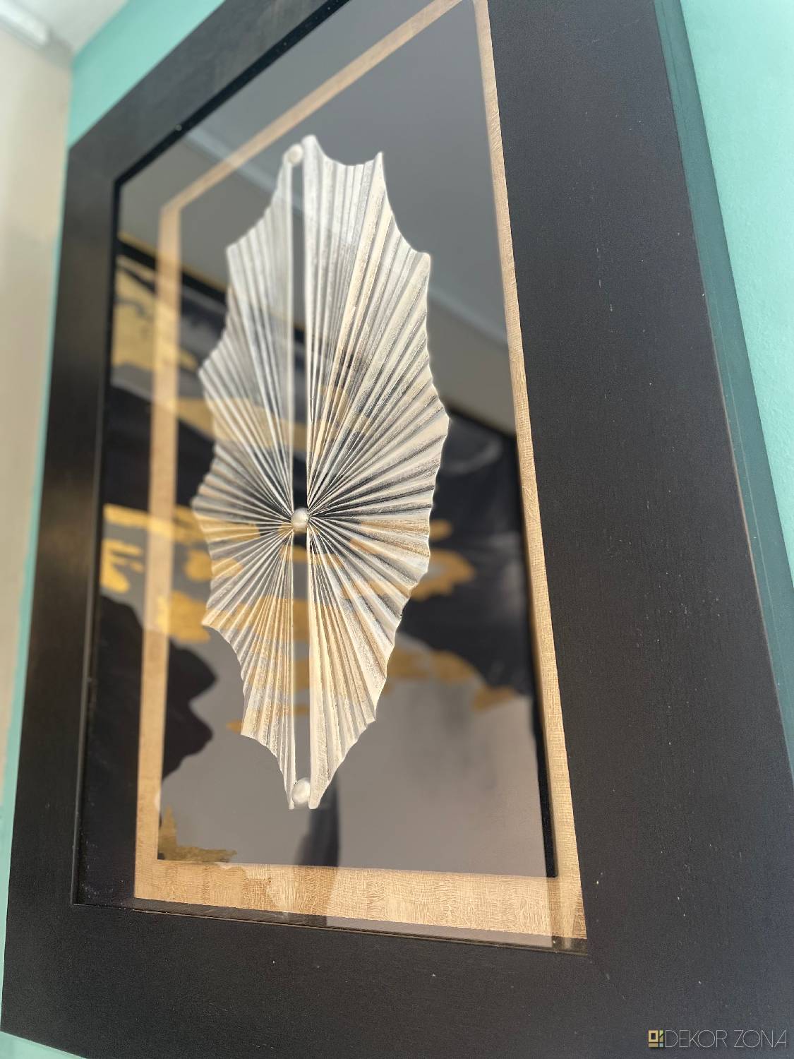 Elegantni triptih u crnoj i zlatnoj paleti, sa stilizovanim listovima i cvetovima koji stvaraju snažan…