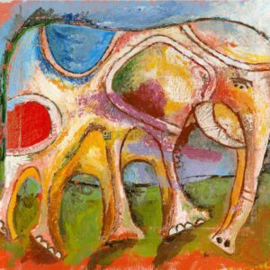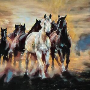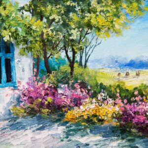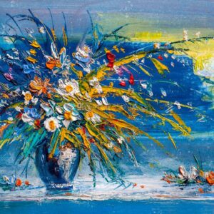 Impresivna cvetna kompozicija u toplim bež-zlatnim nijansama, obogaćena reljefnom ručnom doradom koja daje dubinu i…